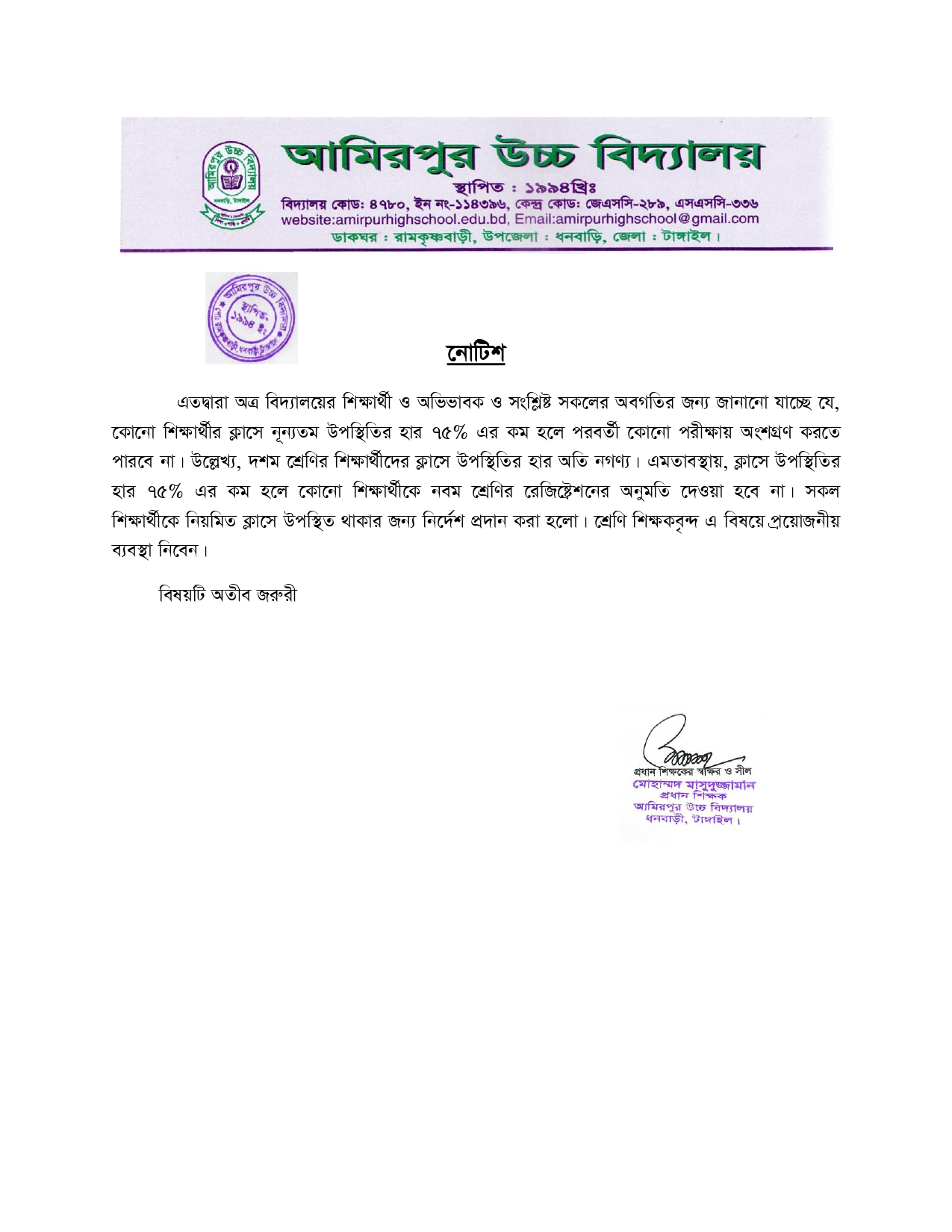 12.Jan.2026 ক্লাস উপস্থিতি নোটিশ View Download